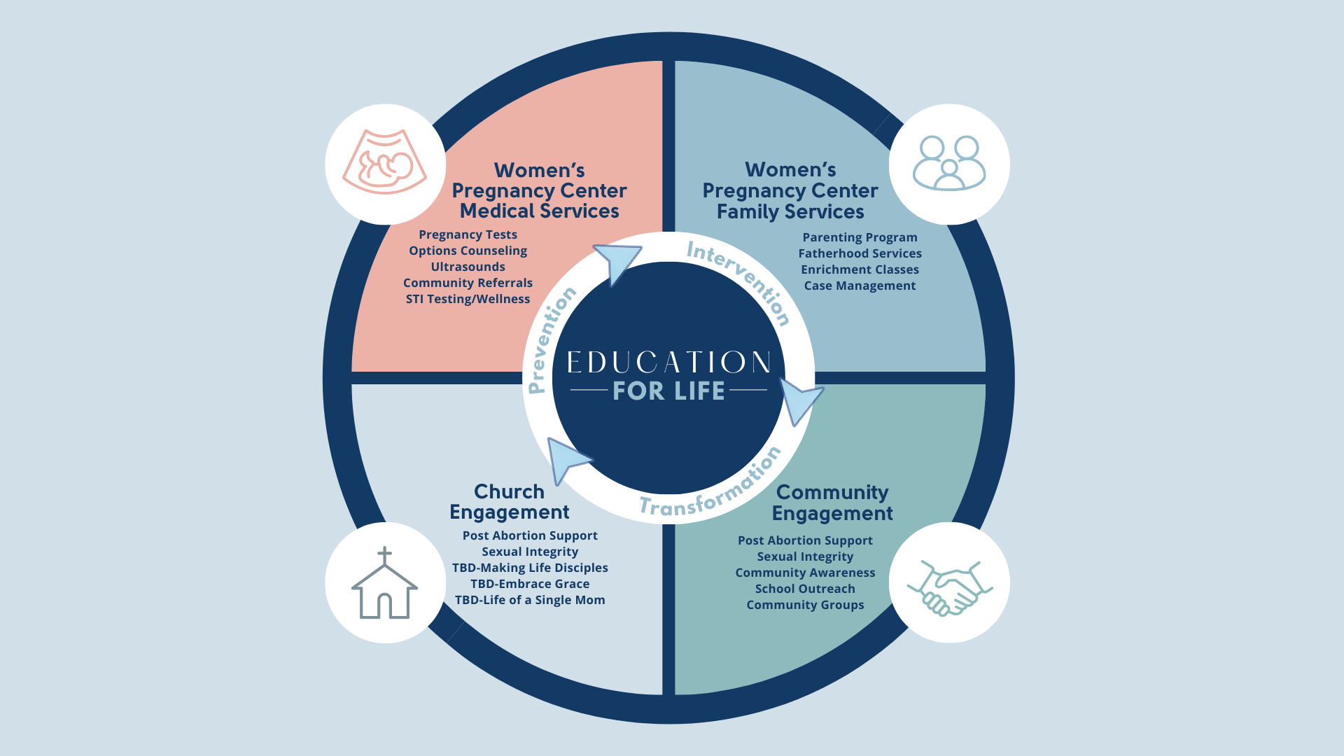 Education for Life is made up of different outreaches all operating under the same oversight and leadership. Each of our ministries is on the same mission - to uphold the truth that all life has inherent value.
